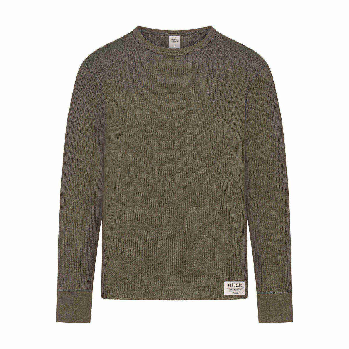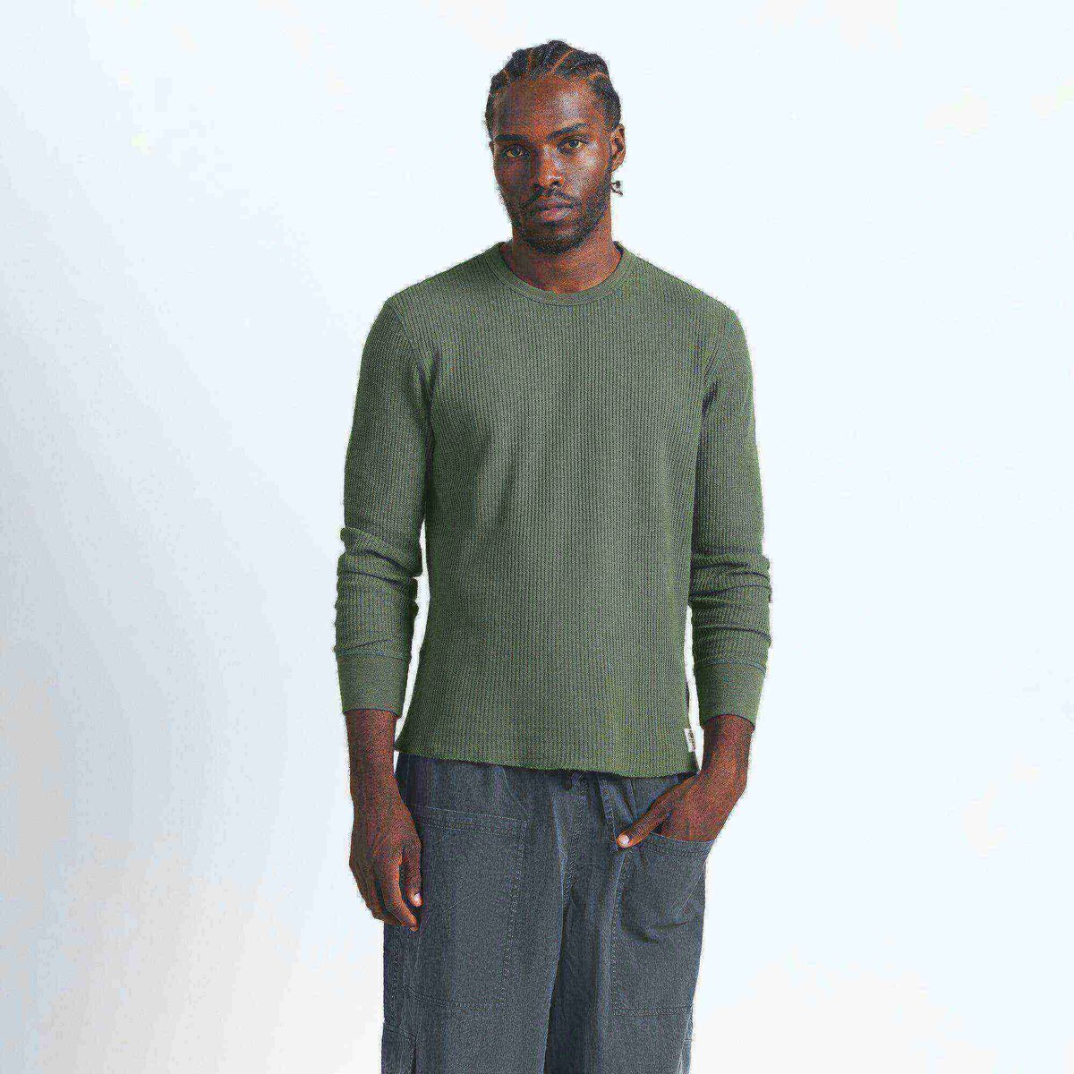 A comfortable, versatile essential. Made in our comfy Waffle knit fabric, this long sleeve tee features a crew neck and logo patch at the hem. Complete with ribbed details at the neckline and cuff. Fits true to size.