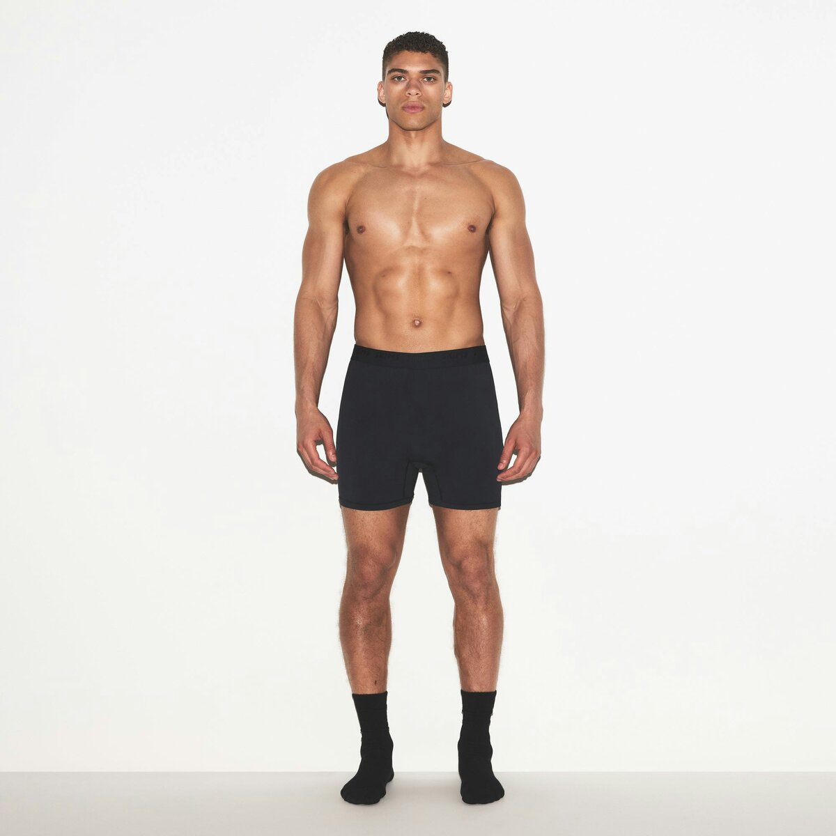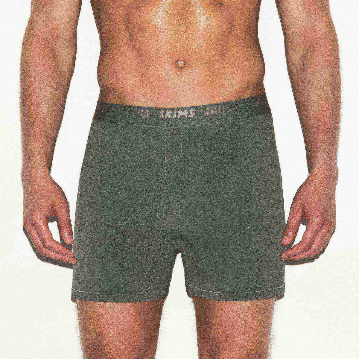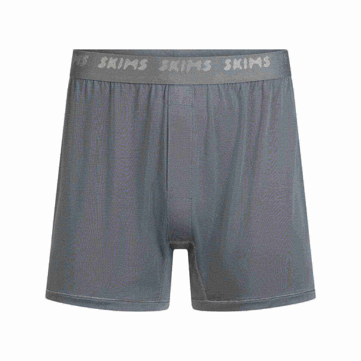 • Boxer silhouette, Elastic waistband with jacquard skims logo, Functional fly opening, Slim boxer fit, Inseam: 5”