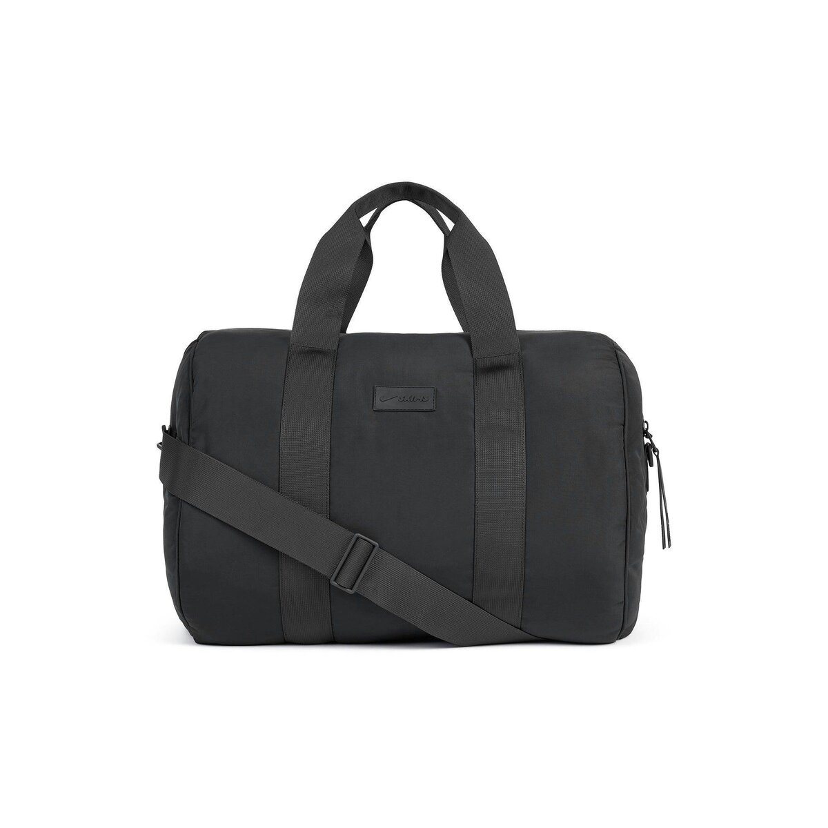 - Padded gym bag, Branded matte silicone logo label at center front, Short handles and removeable, Adjustable shoulder strap, Features multiple interior pockets: large padded compartment for laptop or tablet, Side pockets to organize small items, Key fob attachment, Detachable shoe dust bag