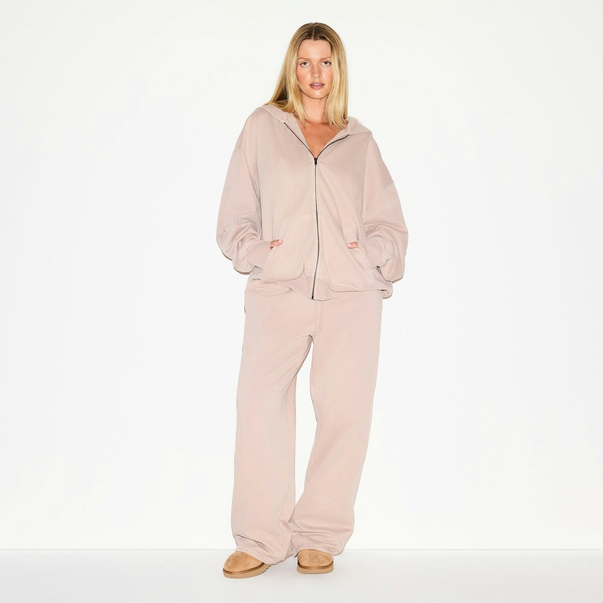 Relaxed comfort for everyday ease. Perfect for on-the-go warmth, this zip-up hoodie is made with our signature heavyweight fleece fabric. Features a self-lined hood, drop shoulder silhouette, and kangaroo pocket. Complete with ribbed details at the cuffs and band and embroidered logo branding. Fits true to size.