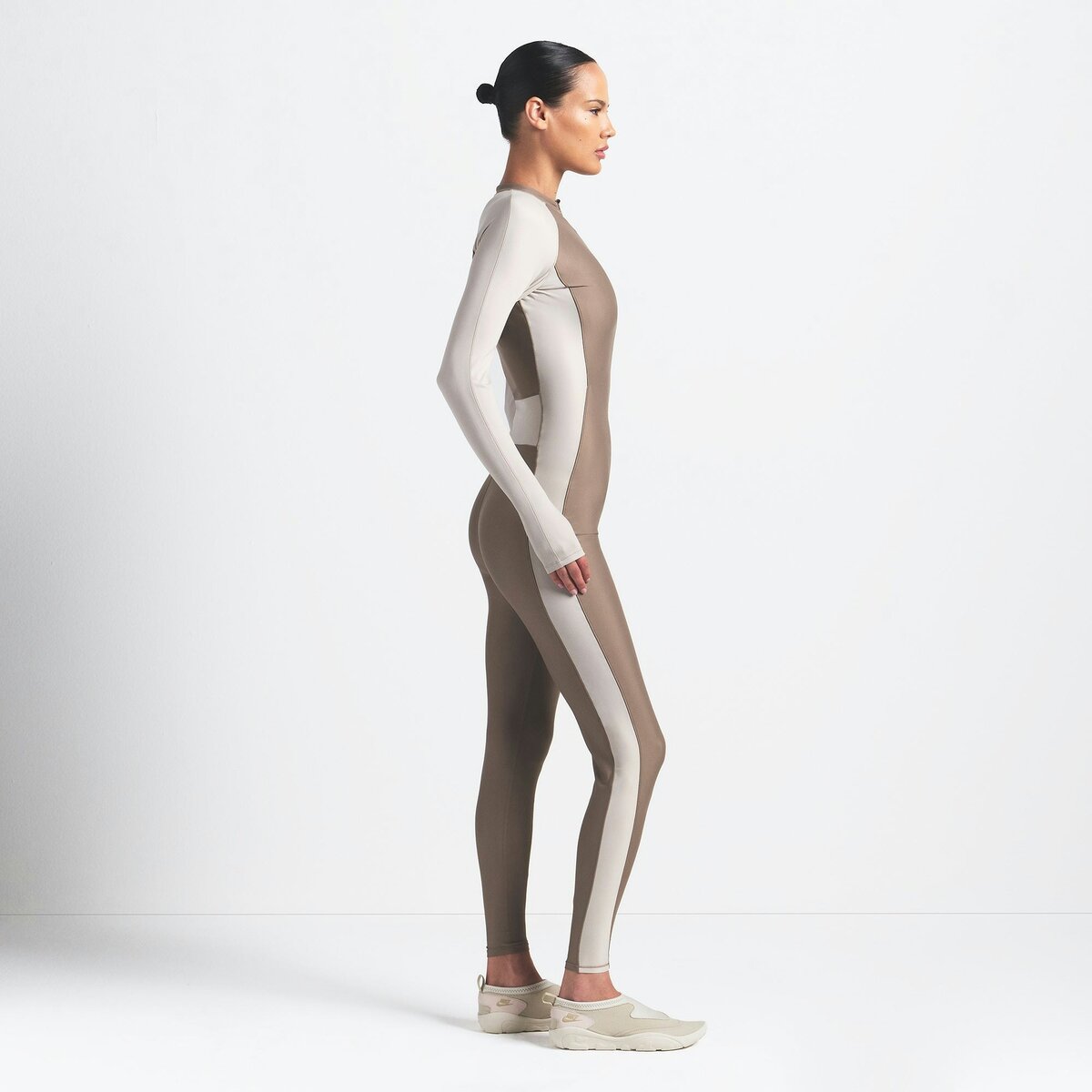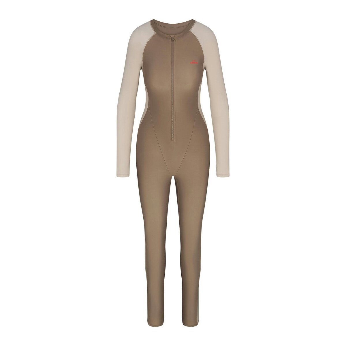 Sleek and sculpted, this full-length one piece comfortably hugs the body with our breathable Shine fabric, while a front zip closure and colorblock details bring bold, functional style.