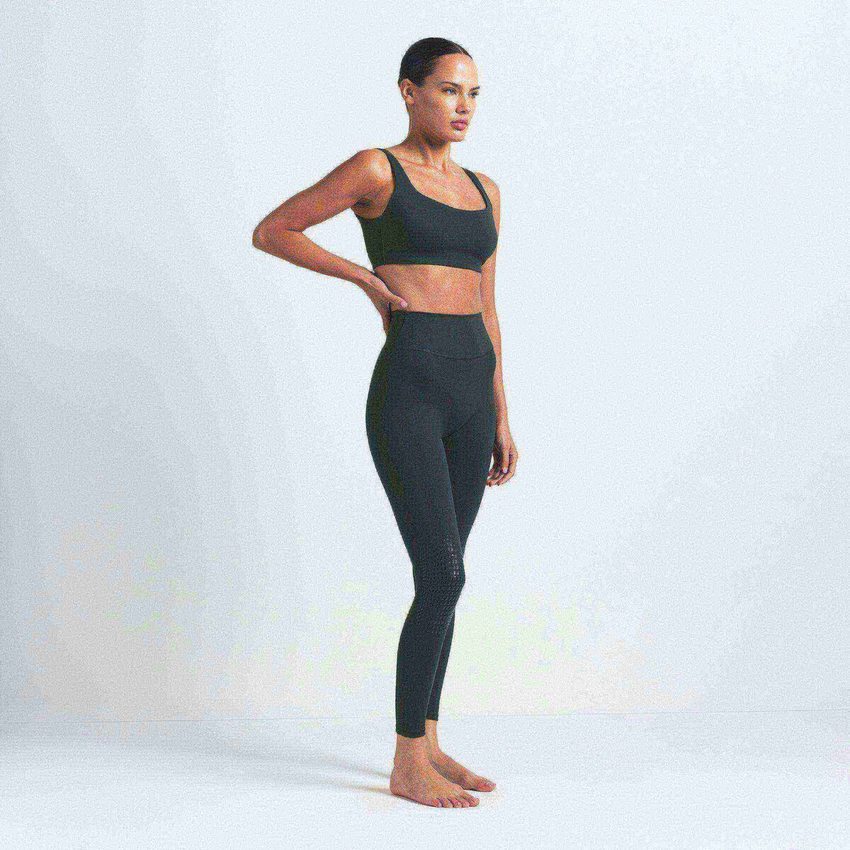 These high-waisted, 7/8 leggings sculpt your shape with side darts, V-shaped seams, and an innovative silicone knee gripper—finished with Dri-FIT™ technology for sweat-wicking performance and secure studio hold.