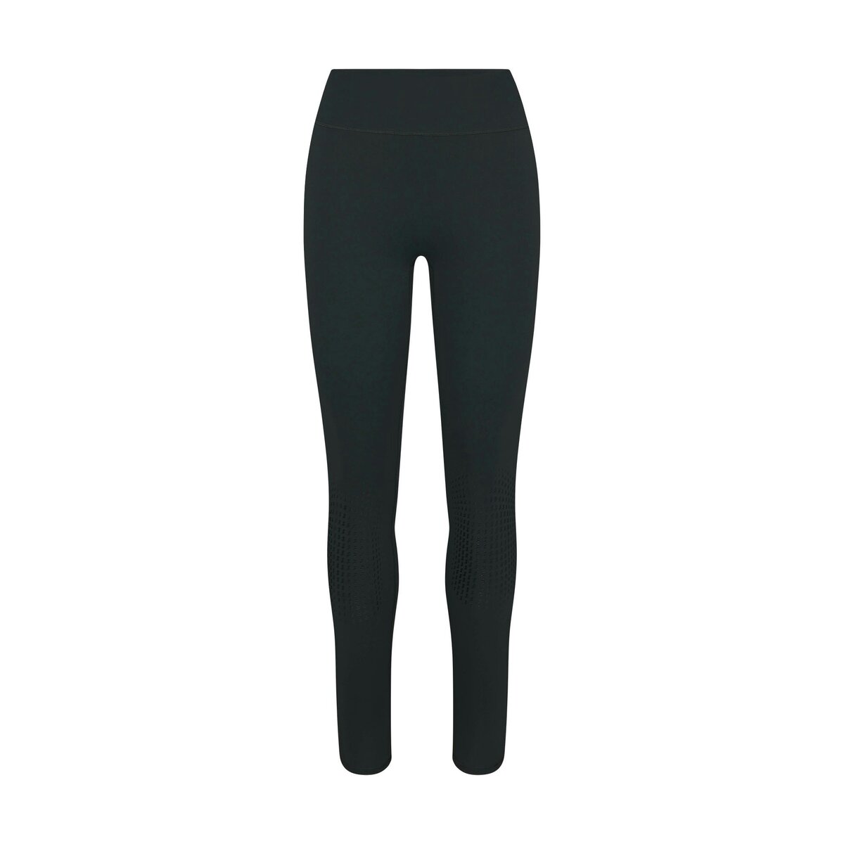 - High-waisted, Thick double layered waistband, Side dart detail, Shiny silicone knee gripper, V-shape seams to accentuate butt shape, Silicone matte logo at center back, Cotton gusset, Fits tight to body, 7/8 length, Inseam: 26″