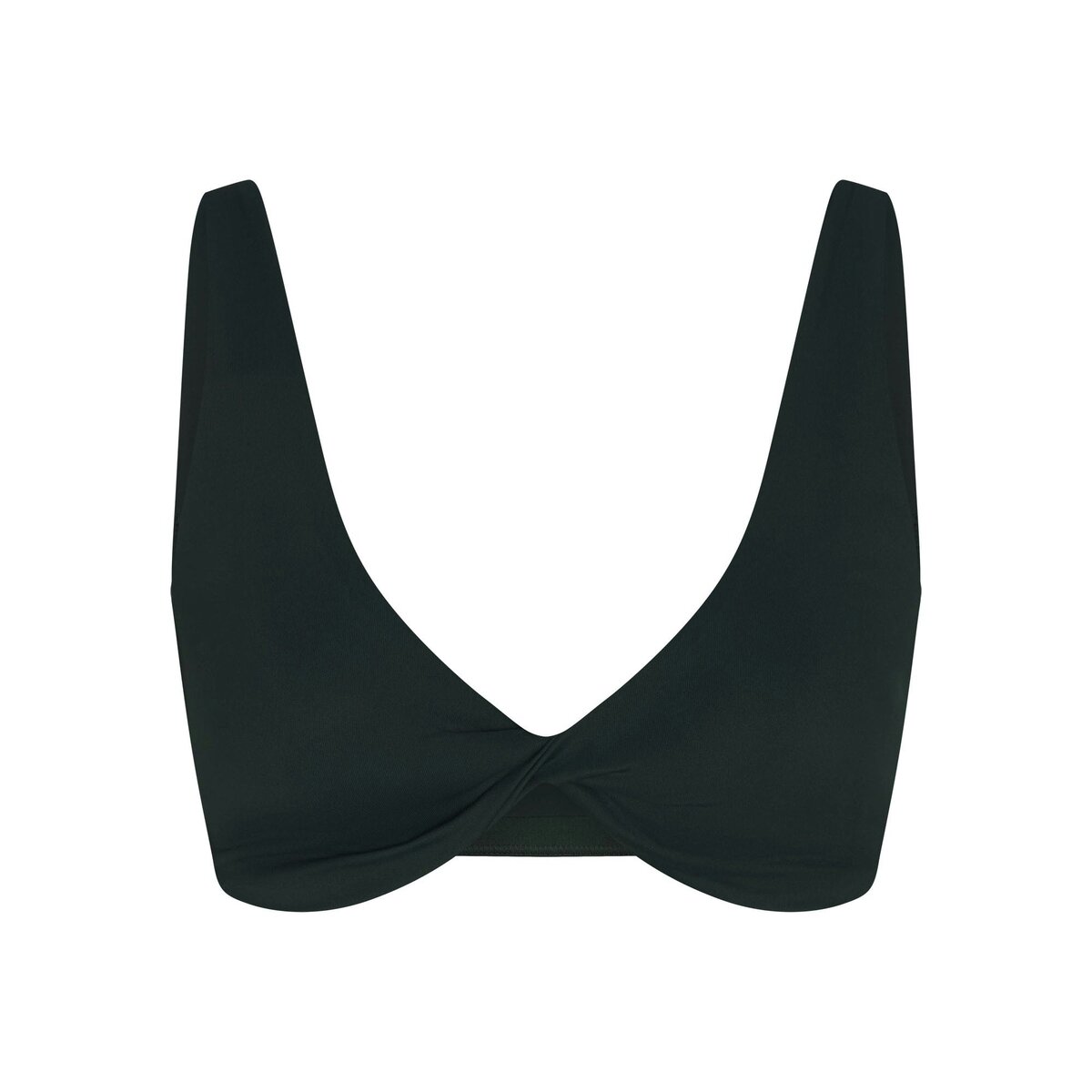 - Low scoop neck, Twist at center front, Lightly molded spacer pads, Silicone matte logo at center back, Pullover style, Best for low impact