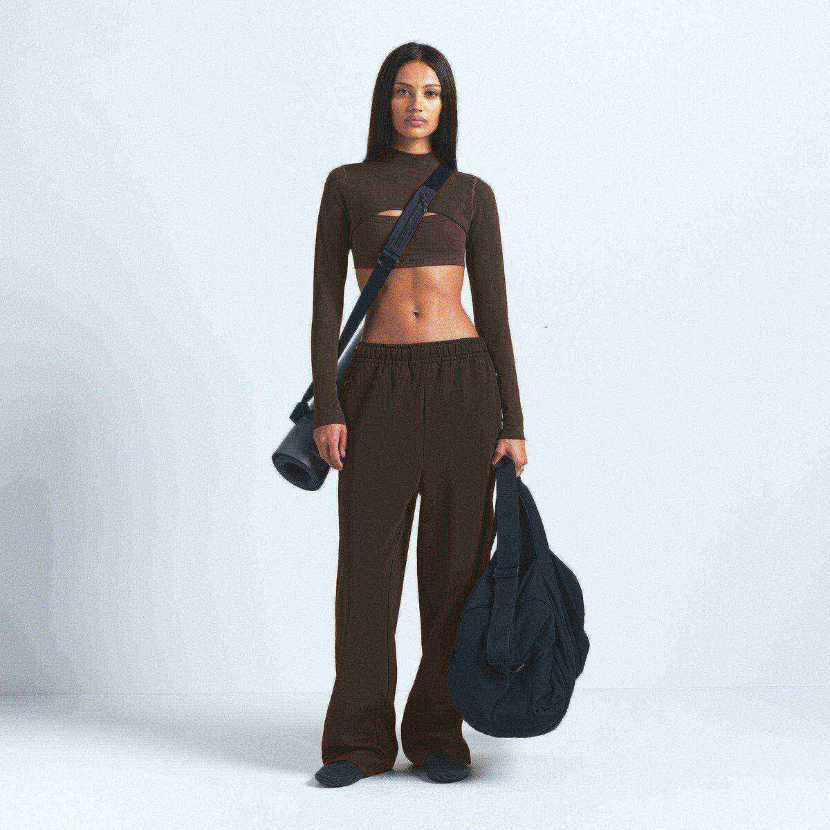 • Maelyn is size 4, 30B, and 5’11” (180cm), wearing SKIMS S; Alyson is size 0, 32A, and 5’9” (175cm), wearing SKIMS XS