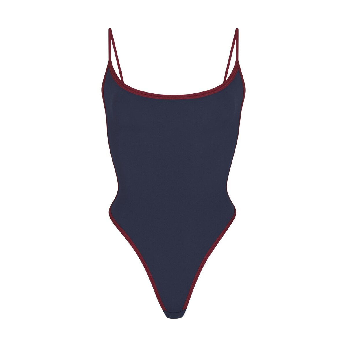 First-place style, second-skin comfort. This sporty bodysuit comfortably enhances your curves thanks to our beloved buttery fabric that is soft and stretchy beyond compare. Features contrast trim along the sexy scoop neck, adjustable straps, sides, and legs. Complete with a 100% cotton gusset that snaps. Fits true to size.