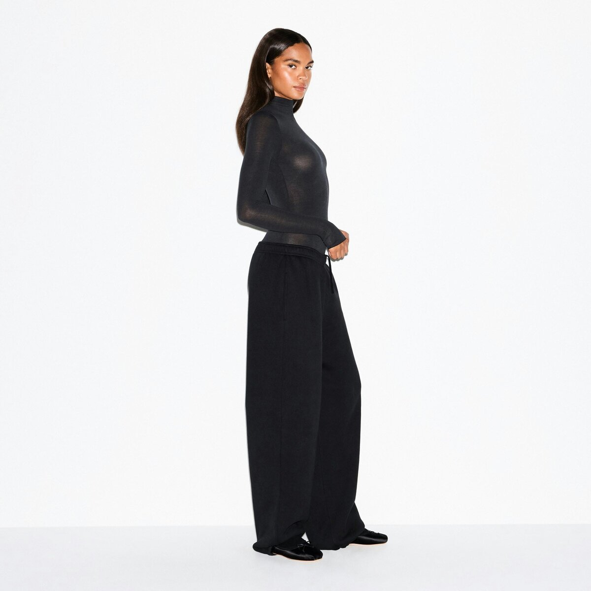 The perfect base for any outfit, this long sleeve turtleneck bodysuit is made from soft and sheer modal-cashmere blend. Features a body-hugging fit and zipper at the center back. Complete with brief back coverage and a 100% cotton gusset with snaps. Fits true to size.