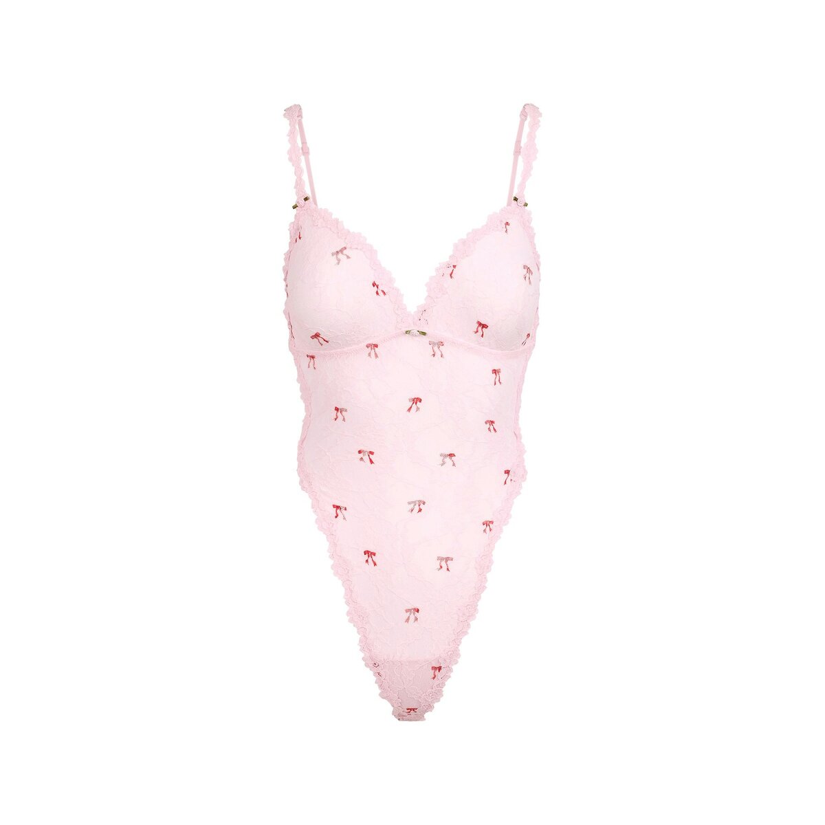 A little lace goes a long way. This v-neck lace teddy is as daring as it gets. Featuring a high-cut leg to highlight every curve and a strappy thong back, this perfect lingerie one-piece is unapologetically sexy and soft for ultimate late night comfort. Treat yourself–you’ve been good all year.