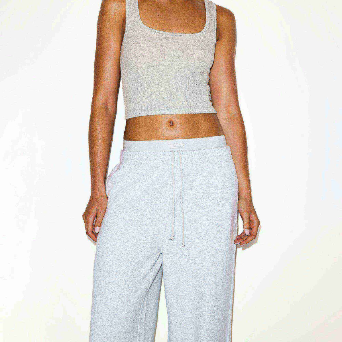 Nail the double waistband trend. This off-duty pant has an oversized fit with a flattering high rise and an effortlessly cool exposed brief waistband. Made from our comfy, cloud-like fleece with the softest plush feel. Features an elastic waist with an interior drawstring and side pockets. Labeled with the SKIMS logo at the center front. Fits true to size.