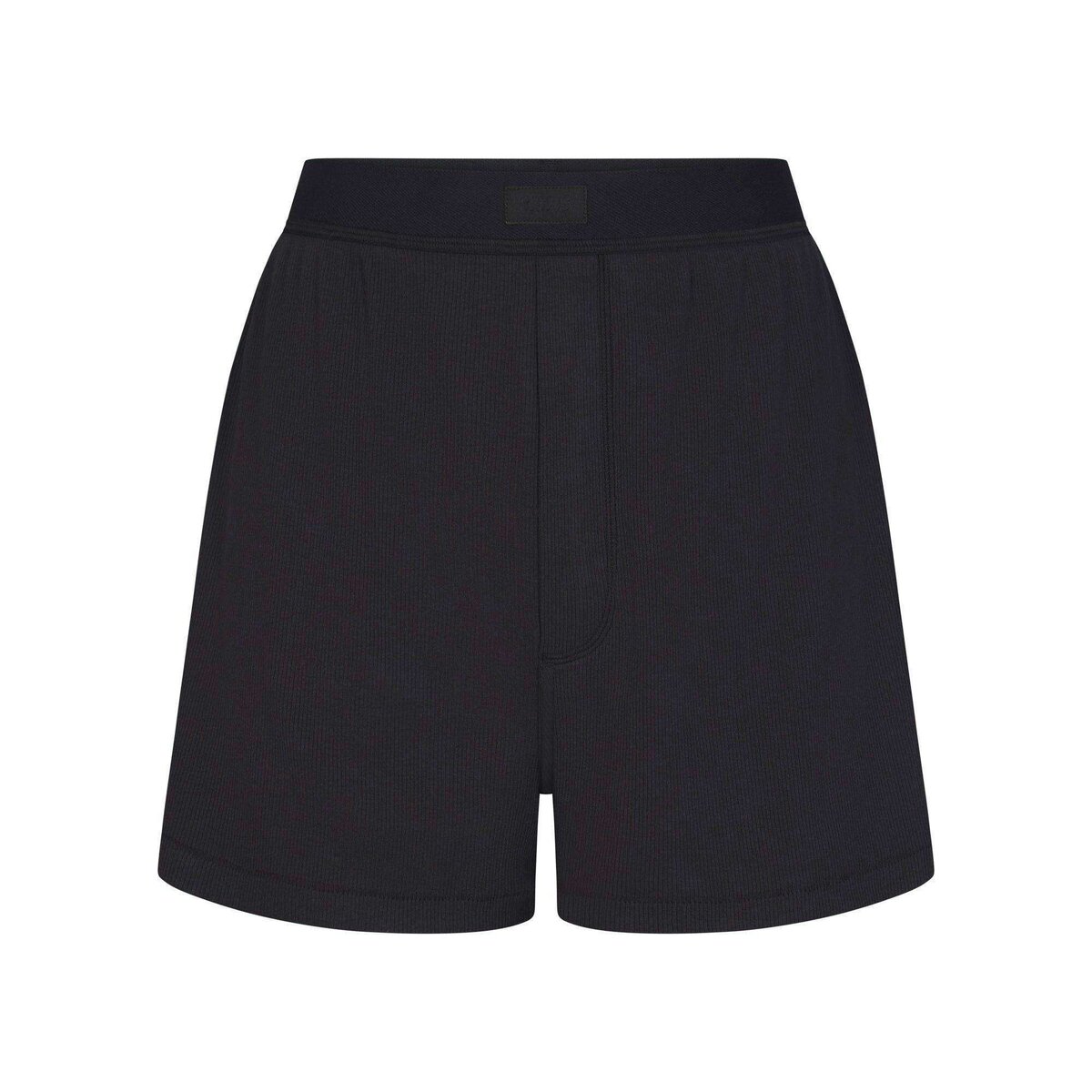 Our most-tagged cotton, now in a boxer inspired by the boys. This lounge short is made with our ultra-soft, breathable ribbed fabric in a relaxed fit for comfort you’ll keep coming back to. Features an elastic waistband with the SKIMS logo at the center front. Fits true to size.