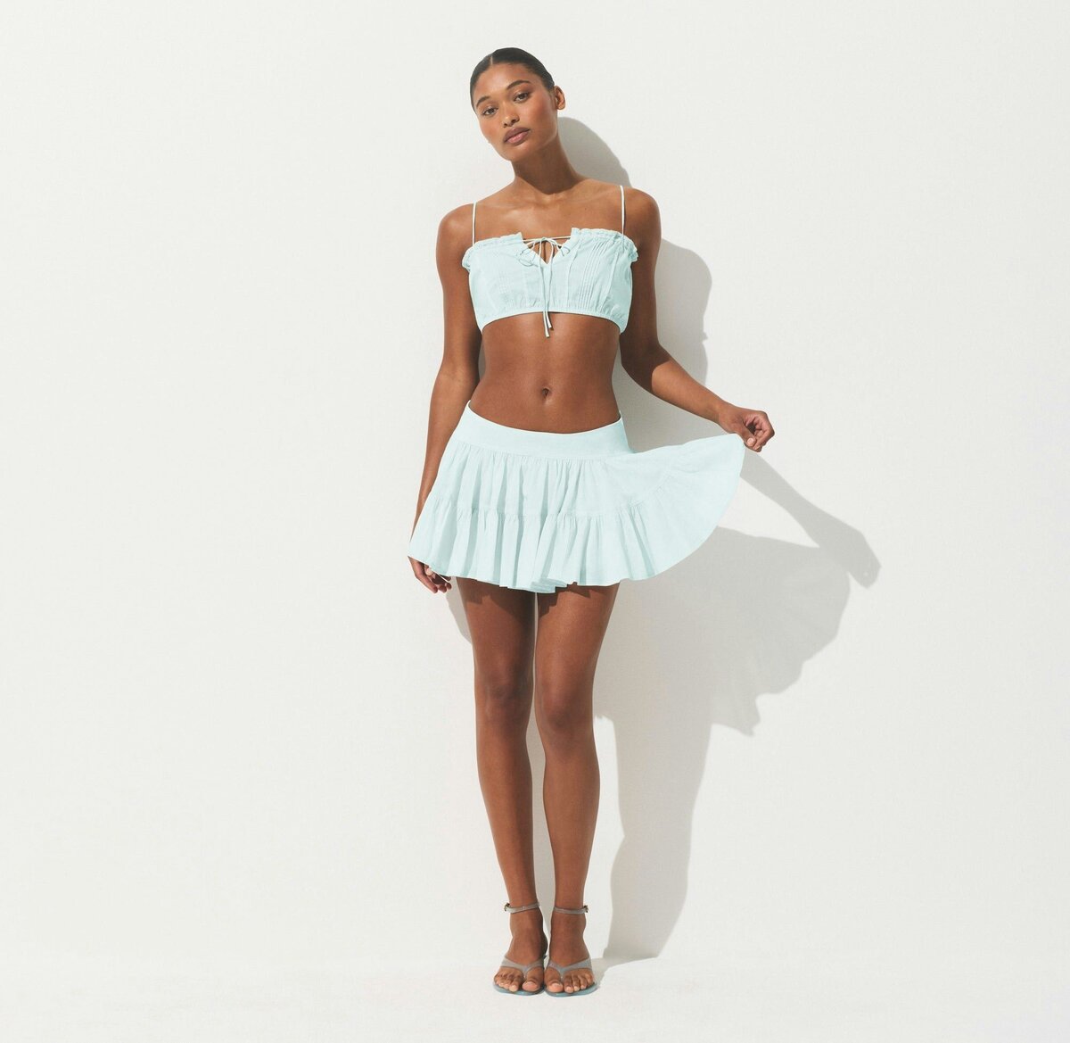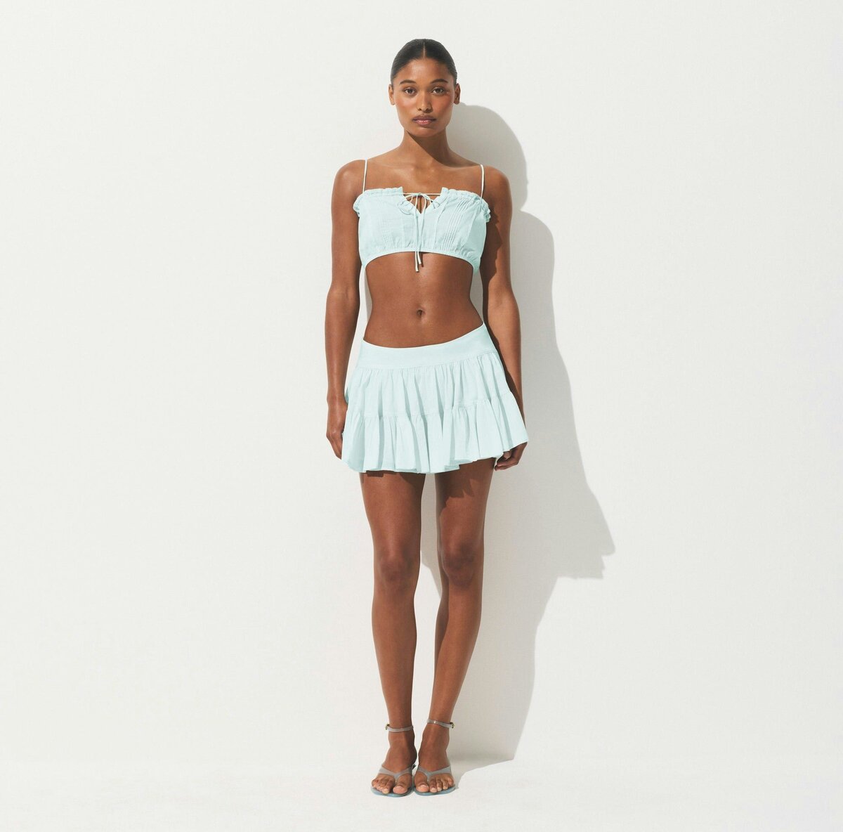 Flowy and feminine. Designed in our breathable woven Cotton Voile fabric, this tiered mini skirt features an interior cotton lining and zipper with a hook and eye closure at the side. Fits true to size.