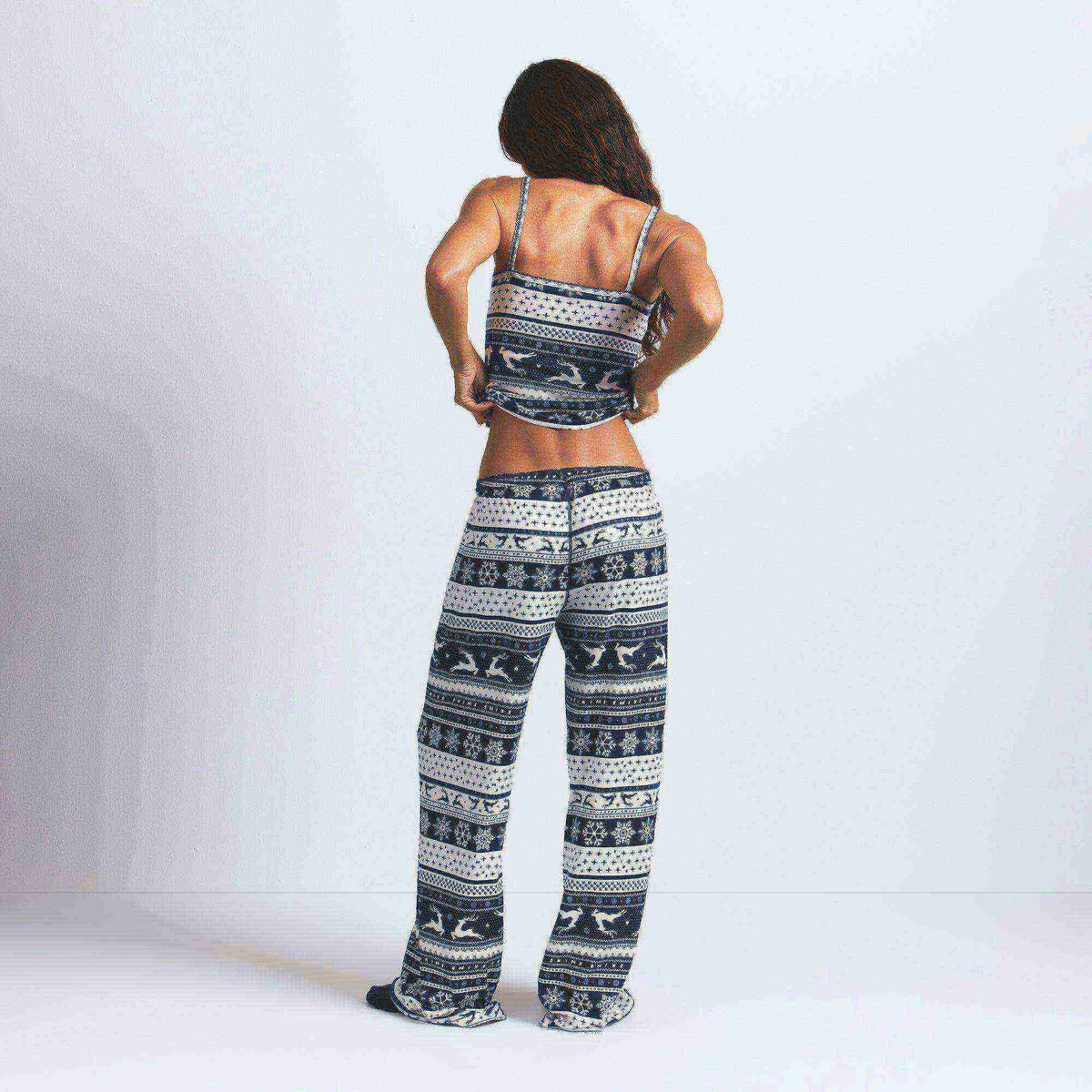 Home for the holidays in SKIMS. These classic straight leg bottoms are soft to the touch with a flattering fit. Our signature logo pointelle fabric meets a festive fair isle pattern in limited edition colorways, offering a playful twist on loungewear for the whole family. Pair with the matching cami and consider your winter uniform sorted.