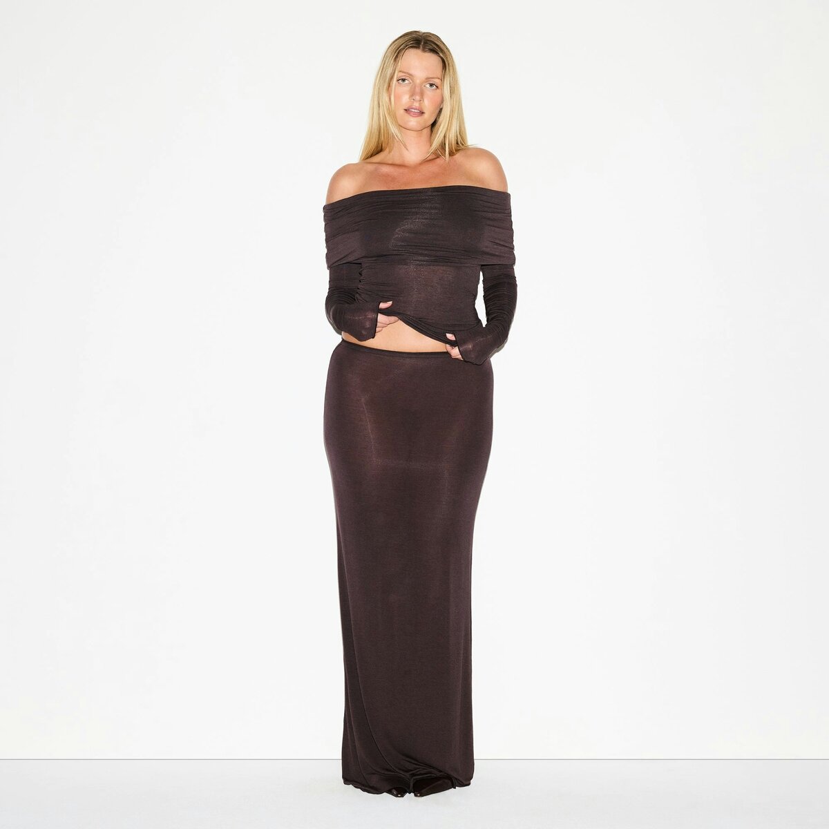 A bold, sheer statement. Designed in our soft and stretchy modal-cashmere blend, this long skirt features a mid-rise silhouette and elastic waistband fo…