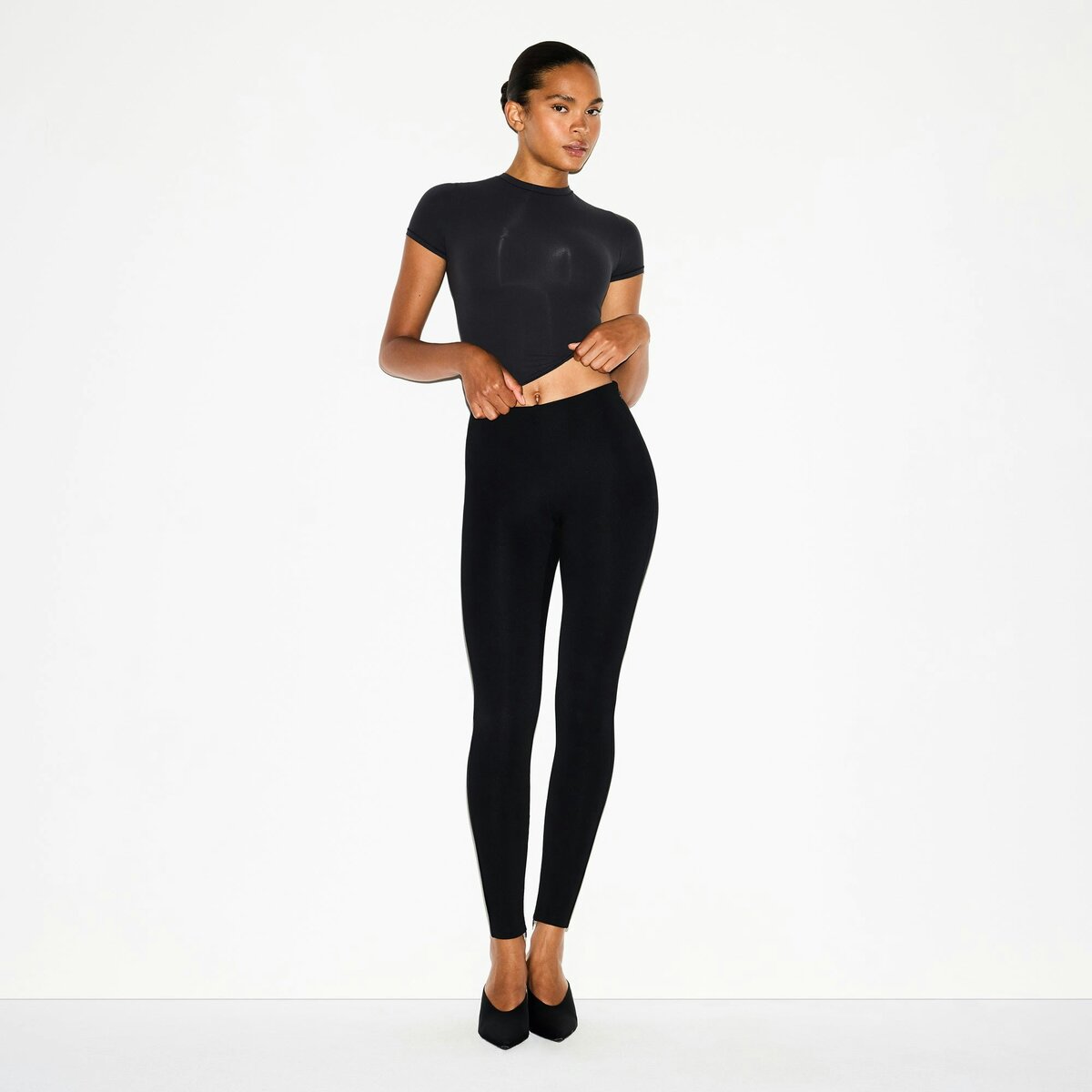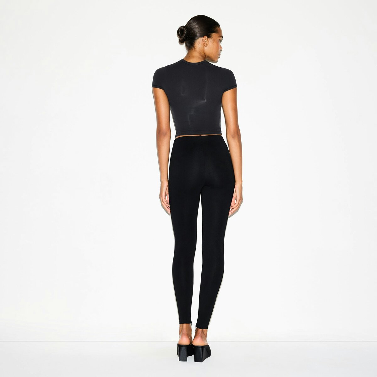 Polished, elevated style. Essential for work and play, these high-waisted, full length leggings are made from our soft and smooth mid-weight fabric. Features an elastic waistband, flattering back darts, and an invisible zipper at the side seam and hem. Complete with a woven SKIMS logo on the interior waistband. Fits true to size.