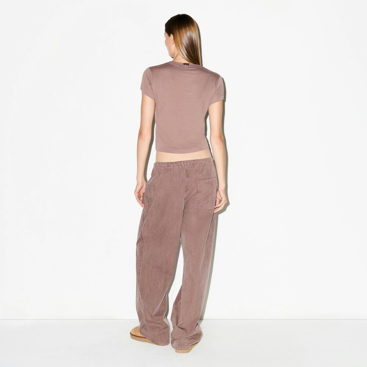 Effortlessly chic and elevated. Made for easy on-the-go comfort, this low-rise straight leg pant is designed in our new, crisp woven fabric. Features an oversized fit, center adjustable drawstring, and patch pocket at the back. Fits true to size.