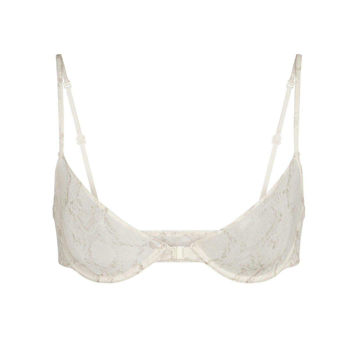 Stretchy, sheer support. Featuring a plunge neckline in our lightweight Milky Sheer fabric, this front close bra makes the perfect first layer. Complete with molded cups, a supportive underwire, and adjustable straps. Fits true to size.