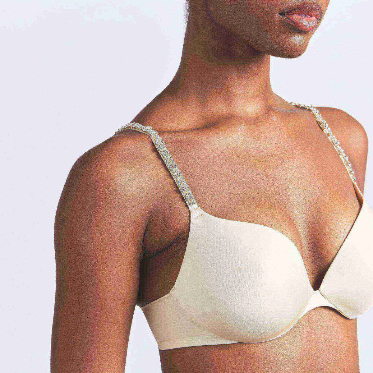 The ultimate combo of lift and luxury. Designed with soft teardrop-shaped foam pads and a concealed underwire in a brushed casing for all-day comfort. The rhinestone-embellished front straps add sparkle, while elastic back straps and a hook-and-eye closure provide adjustability and support.