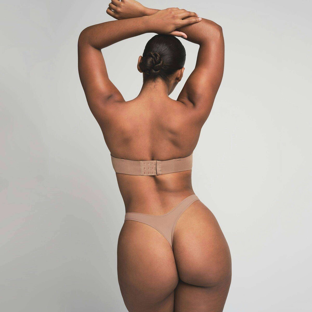 • Amber is size 12 and 5’ 11″ (180 cm), wearing SKIMS 38C