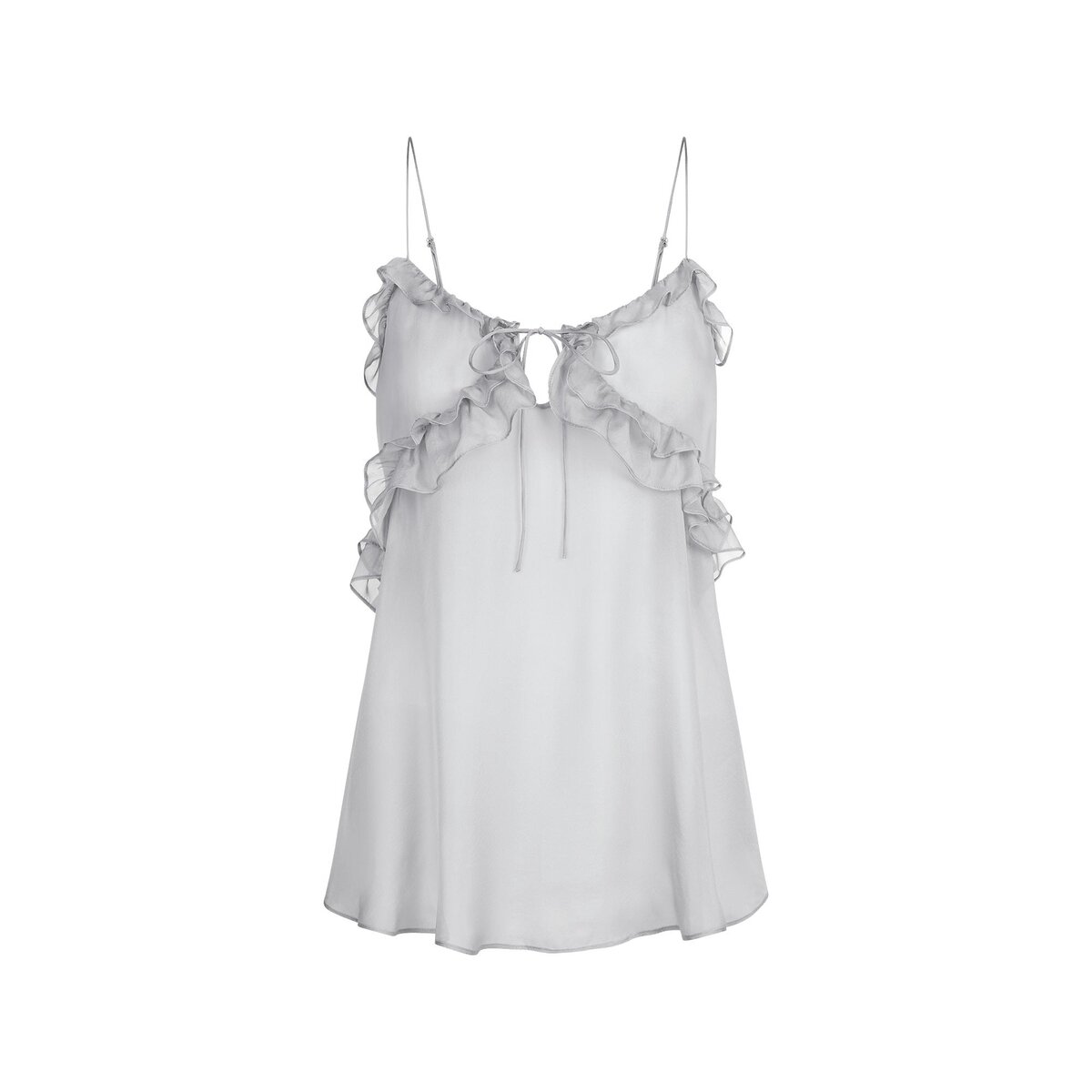 Slip into something romantic. Designed in our 100% silk chiffon, this flowy sheer mini features frill details and adjustable straps. Complete with a scoop neckline, dainty center front ties, and a front and back keyhole. Fits true to size.