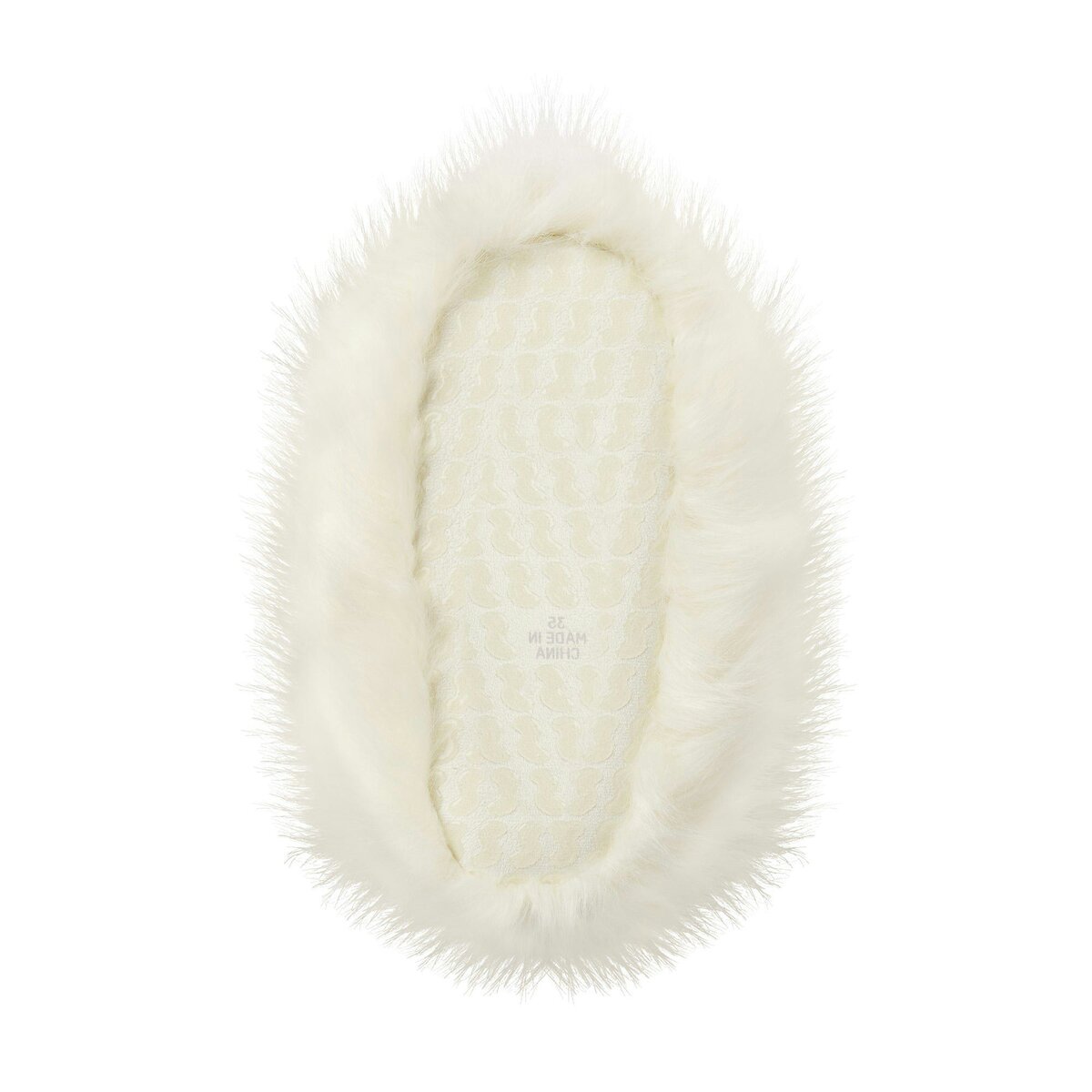 - Indoor yeti slipper, Long faux faur, Felt forns, Lined in felt, Soft sole with silicone grip