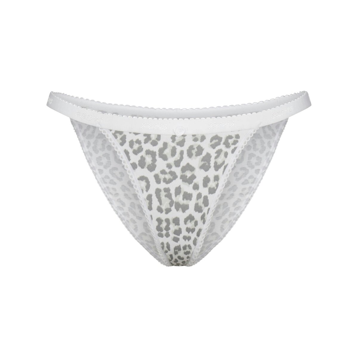 Lightweight cotton comfort meets feminine allure in this string bikini. With delicate lace elastic and a dainty rosette detail, this bikini instantly sweetens your top drawer. Includes a 100% cotton gusset. Finished with a repetitive logo on the picot elastic waistband. Fits true to size.