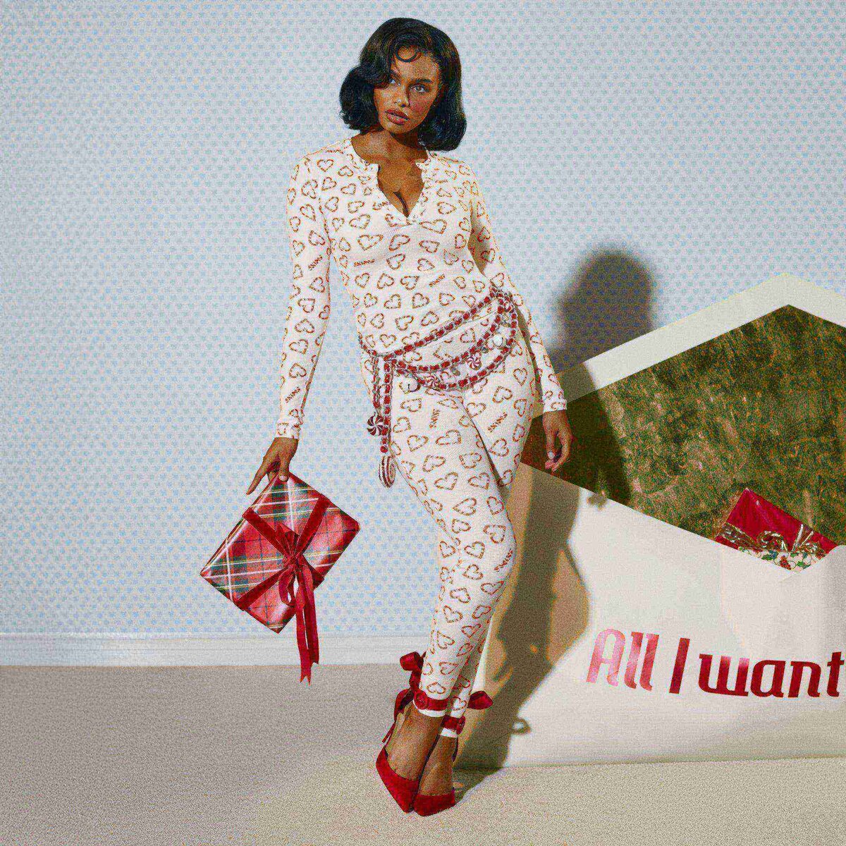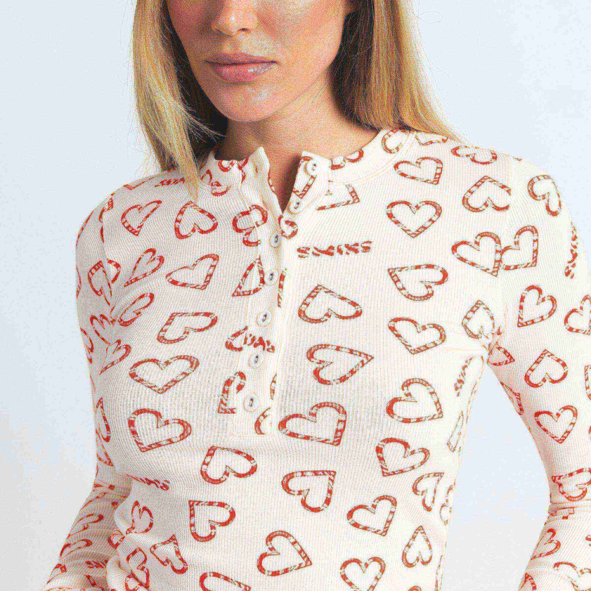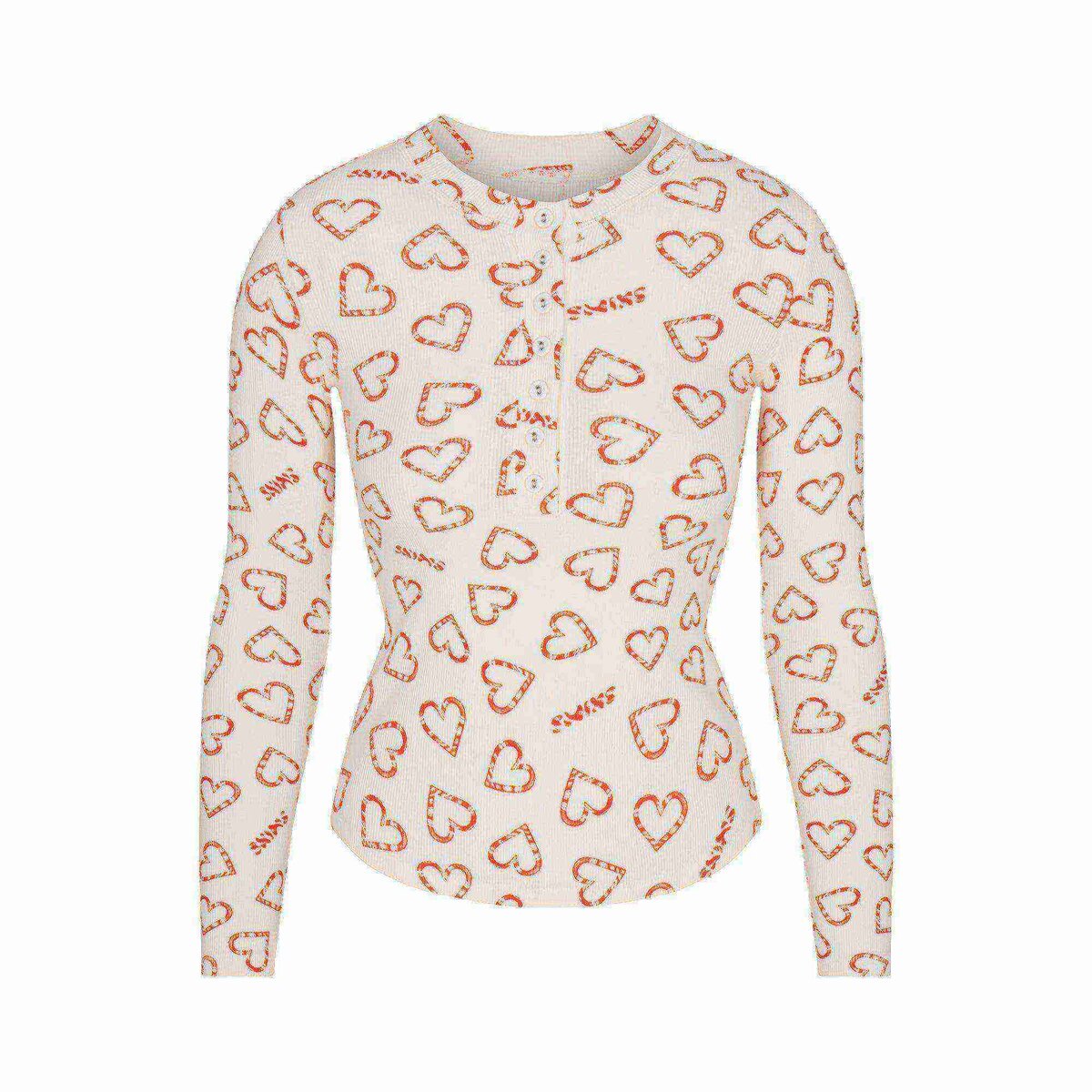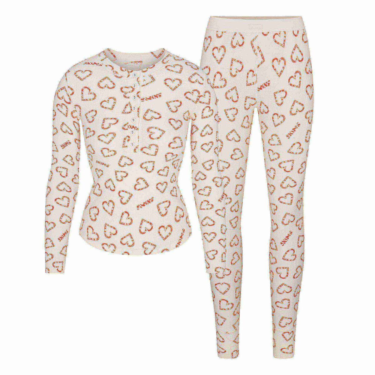 Lounge in style and comfort. The scoop henley top with long sleeves pairs perfectly with low-rise leggings featuring an elastic waistband. Made from our signature Cotton Rib fabric, this set blends cozy comfort with a fresh holiday twist.