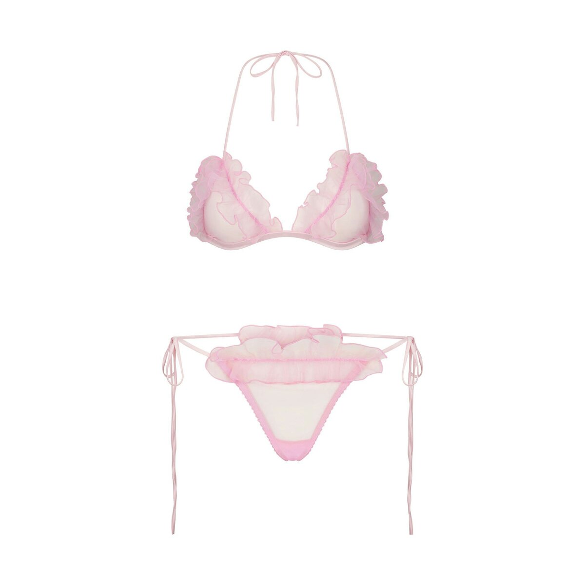 Alluring from every angle. This set is designed in our sexy sheer tulle and features flirty frills at the neckline and waist. The triangle bralette incl…