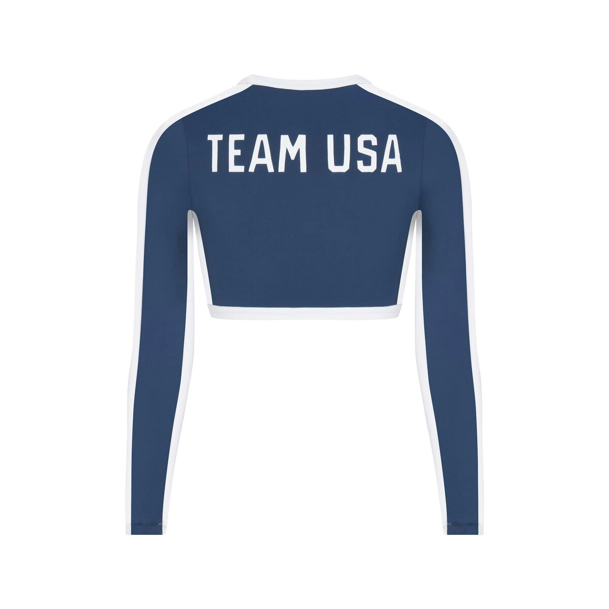 SKIMS FOR TEAM USA SIGNATURE SWIM PARALYMPIC LONG SLEEVE CROPPED T-SHIRT