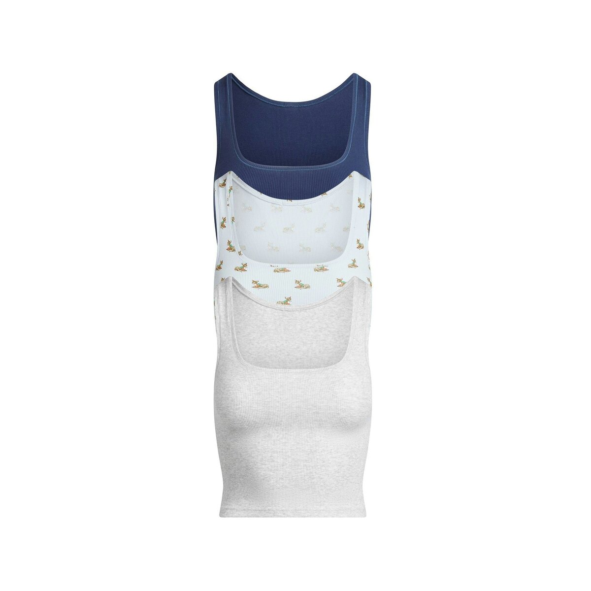 Our most-tagged Cotton Rib Tanks. These limited-edition packs include three ultra-soft, flattering tanks in a breathable fabric that’s perfect to wear all year round. Make it a set with the corresponding Cotton Rib Boxer Bundle. This pack features styles in Light Heather Grey, Zen Blue Baby Deer Print, and Navy. Fits true to size.