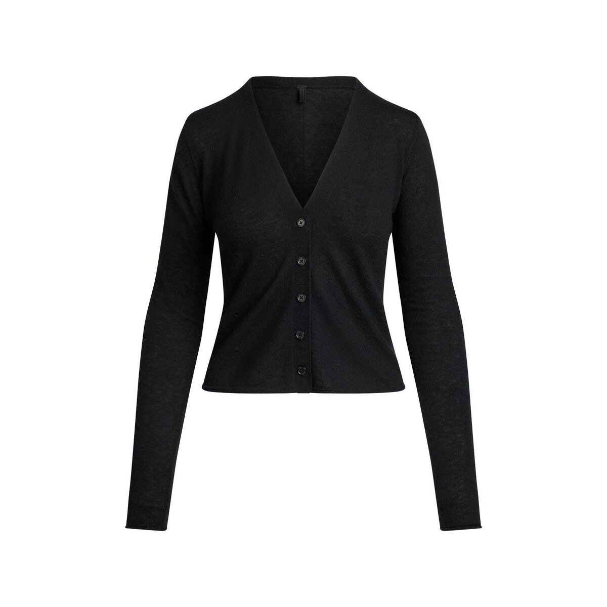Layered to perfection. Made from lightweight, 100% Grade A Cashmere, this cardigan wraps you in premium, soft comfort. Features a plunge neckline and center front button closure. Fits true to size.
