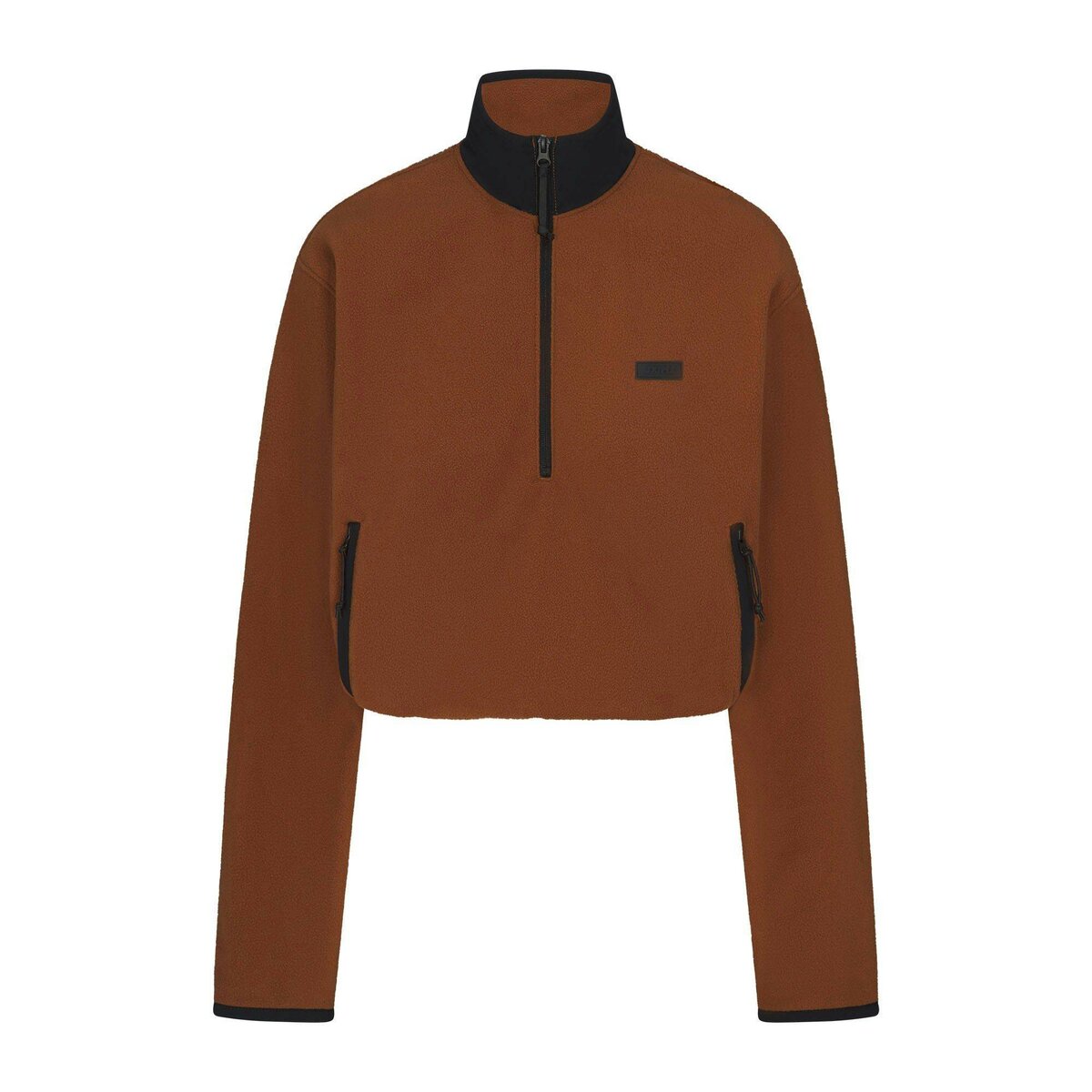 Cooler days call for this plush half-zip. Designed in our mid-weight polar fleece with contrast detailing, this relaxed pullover features a loose mock neck and adjustable bungee cord at the hem. Complete with zipper pockets and a SKIMS logo on the side chest. Fits true to size.