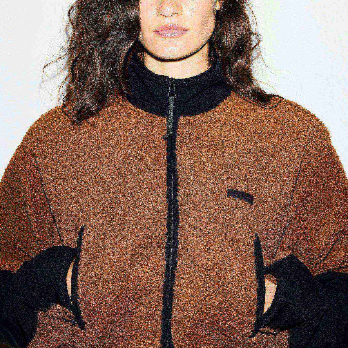Layered in comfort. Your go-to essential for effortless warmth, this cropped half-zip is made in our signature soft faux shearling. Features a loose mock neck, woven panel detailing, and an adjustable bungee cord at the hem. Complete with zipper pockets and a SKIMS logo on the side chest. Fits true to size.