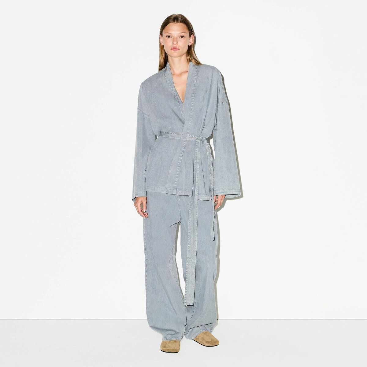 Wrapped in easy comfort. This relaxed top is made with our new, elevated woven fabric and features a casual drop shoulder silhouette. Complete with a self-tie belt for an adjustable fit. Fits true to size.